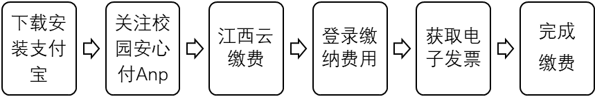 操作说明:在手机支付宝主界面上方的搜索栏里,输入“校园安心付Anp”,点击关注后,进入“江西云缴费”模块,按操作提示缴费。
