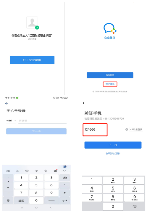 2、通过手机号登录企业微信
