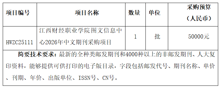 beat365正版唯一入口必一图文信息中心2026年中文期刊采购项目(项目编号:HWZC25111)的潜在供应商应在江西好望投资咨询有限公司(邮箱:jxhwtz@163.com)获取采购文件,并于2025年 11月 21日10点00分(北京时间)前提交响应文件。