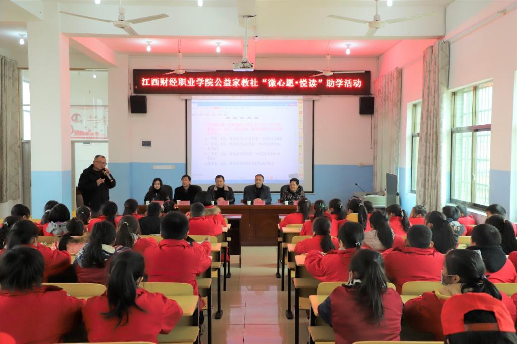 2020年12月18日,beat365正版唯一入口必一公益家教社19名志愿者在指导老师柯新华教授的带领下,赴武宁县鲁溪镇开展 “微心愿•悦读”助学活动。鲁溪镇党委、政府对此次活动给予了高度重视,副镇长余著海、镇关工委执行主任黎丽威、鲁溪中心小学校长刘风华等领导出席了本次活动。