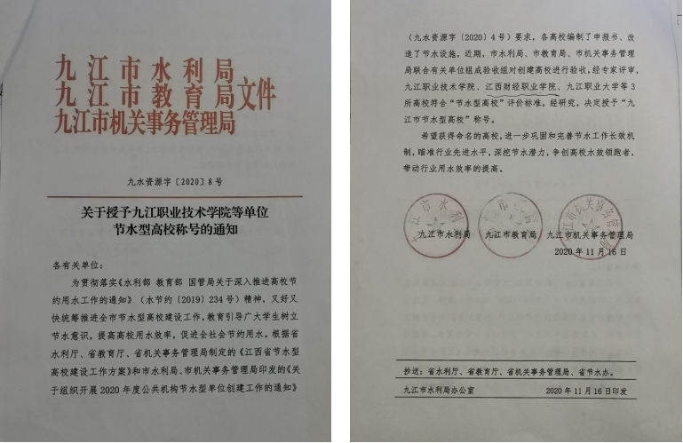 近日,九江市水利局、九江市教育局、九江市机关事务管理局联合有关单位组成验收组对beat365官网创建“节水型高校”进行验收,经专家评审,beat365官网符合“节水型高校”评价标准,被授予“九江市节水型高校”称号。