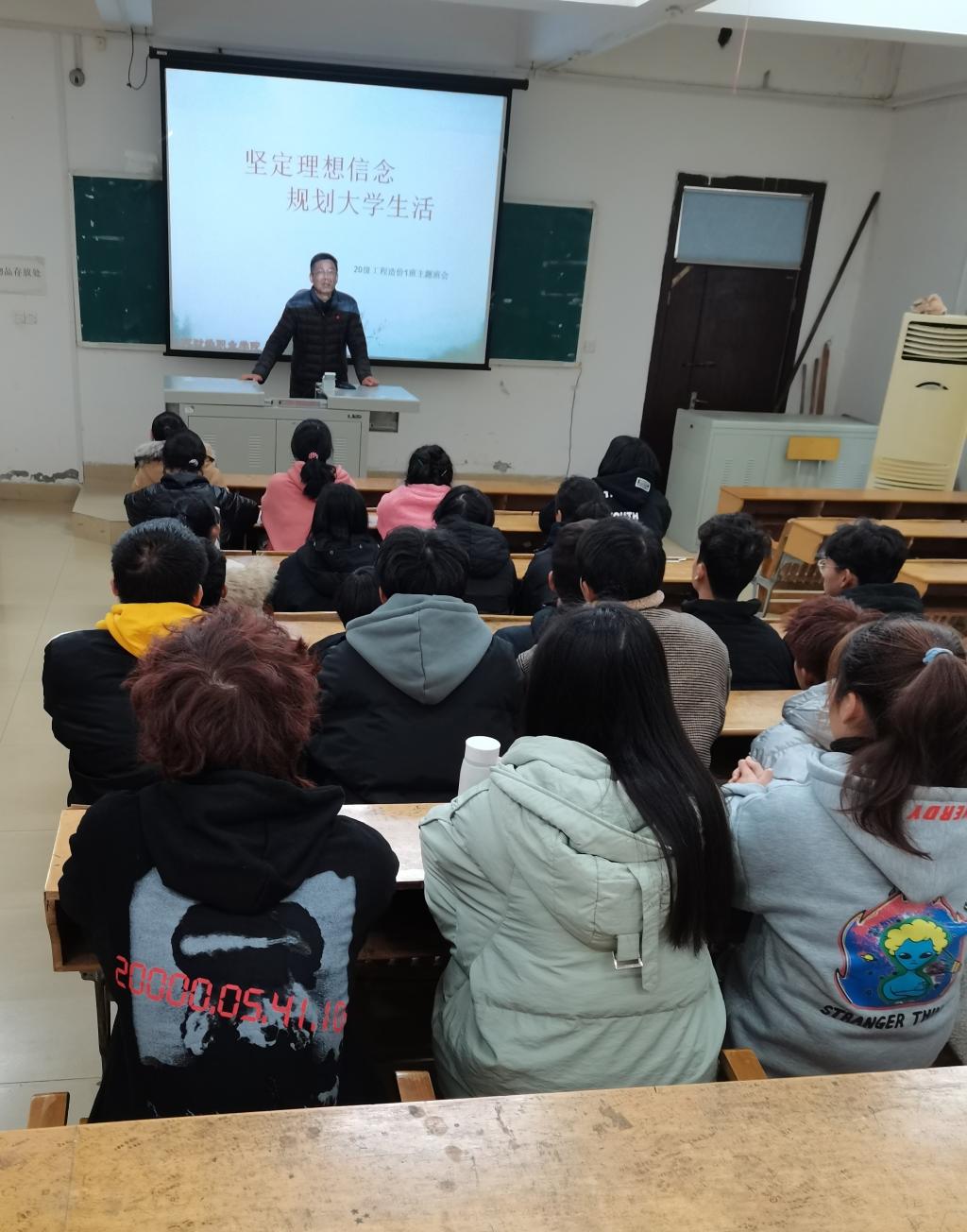 首先,张成斌以班主任的身份主持召开了“坚定理想信念 规划大学生涯”主题班会,通过同学们对自己大学生涯规划的分享,张成斌进行了总结,肯定了同学们能够有很完善的大学生涯规划,针对同学们的困惑也提出了一些建议,并对全体同学提出了三点期望:一是要注重明德,提升道德修养,做一个具有正能量的大学生;二是要善于学习,要适应时代发展,增强本领技能;三是要严格自律,实现理想重在落实,只有严格自律、拼搏进取才能达到目标。