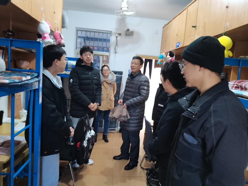 随后,张成斌与同学们一起来到男生宿舍,像长辈一样仔细的询问同学们的生活状况,亲切的与同学们交流,勉励同学们勤奋学习、努力向上、锻炼身体,养成良好的生活习惯,为未来的发展打下坚实的基础。