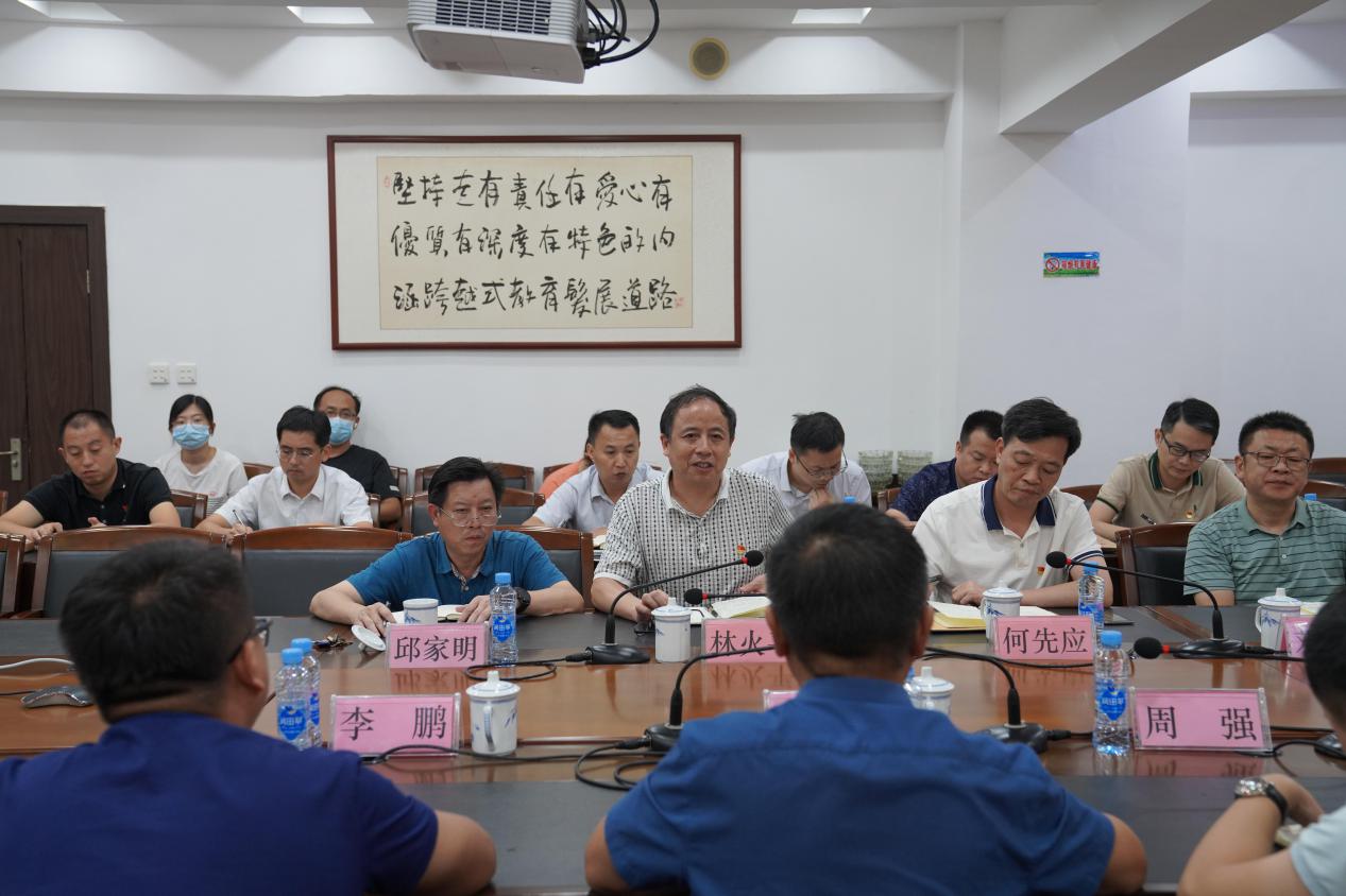 9月8日,省委党史学习教育第九巡回指导组第一小组朱代洪副组长一行3人到学校开展党史学习教育专题组织生活会“回头看”工作。校党委书记林火平,党委副书记、常务副校长何先应,党委委员邱家明、刘锋等校领导和学校党史学习教育工作小组成员及部分党支部书记参加了会议。