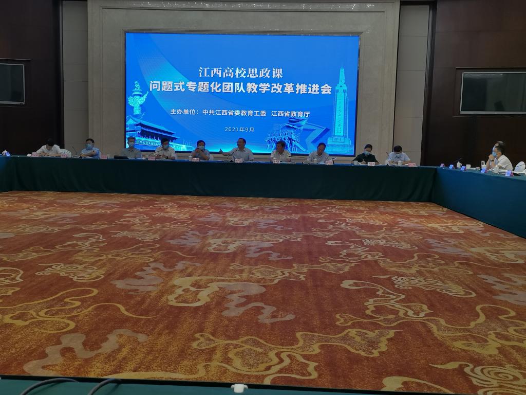 9月18日上午,江西高校思政课问题式专题化团队教学改革推进会在南昌召开,会议进一步总结前期改革经验,研究化解改革中遇到的难题,部署下一步思政课教学改革工作。会议由省委教育工委书记叶仁荪主持,全省参与思政课问题式专题化团队教学改革的46所高校党委书记和马克思主义学院院长(思政部主任)与会,校党委书记林火平和马克思主义学院院长朱欣成参加。
