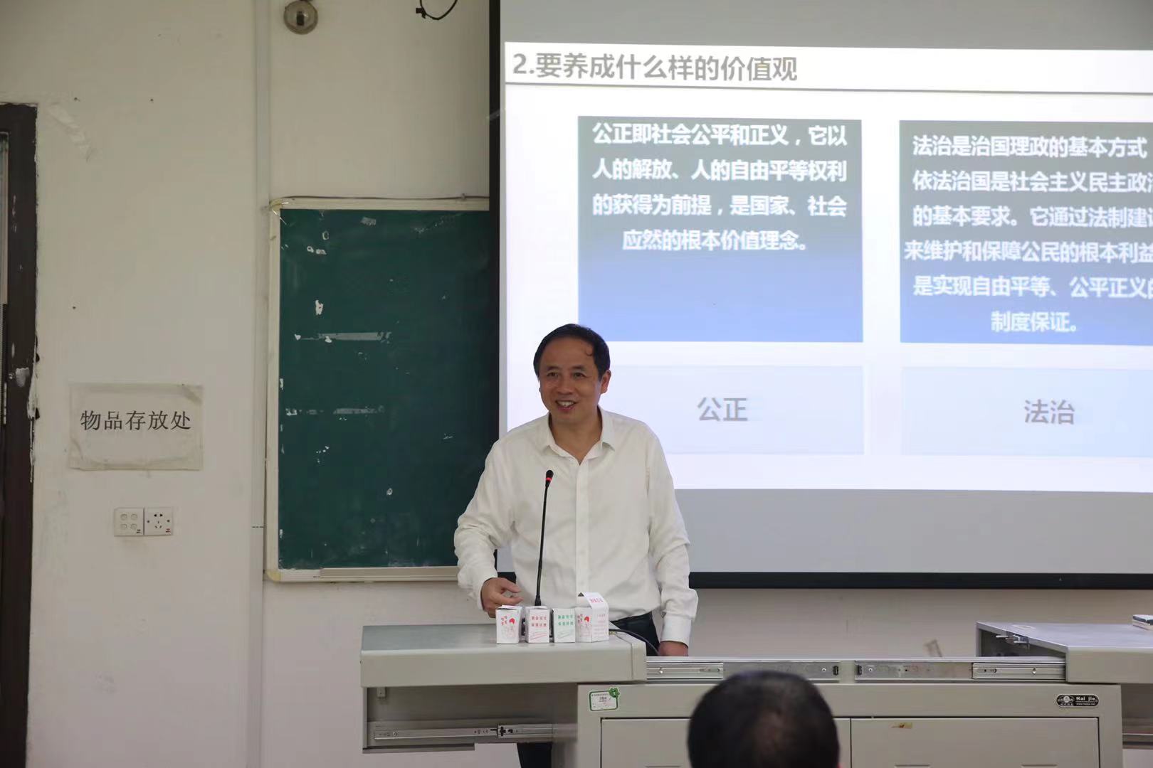 本次班会围绕“大学新生价值观形成与确立——扣好人生的第一粒扣子”主题展开。林火平教授从“什么是价值观”、“要养成什么样的价值观”、“如何养成价值观”三个方面,深入浅出地给同学们讲解了价值观对大学新生的人生意义。他结合丰富案例,系统阐述了社会主义核心价值观的内涵,并从大学新生的实际出发,提出了实实在在养成良好价值观的途径。