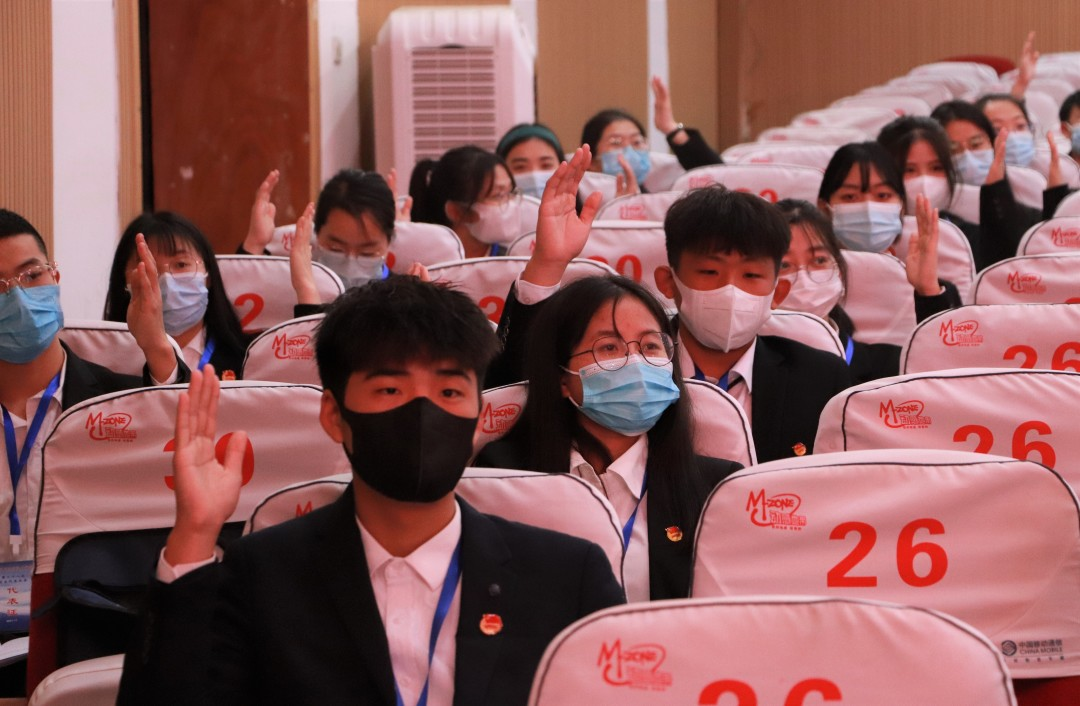 闭幕式后,第二十八届学生委员会召开了第一次全体会议,会上聘任校团委干事王磊为校学生会秘书长。王磊带领新一届委员会学习了党的十九届六中全会精神,并要求新一届学生会要加强学习,用科学理论武装头脑;要切实履责,带领全校青年听党话、跟党走;要严于律己,树立学生干部良好形象。