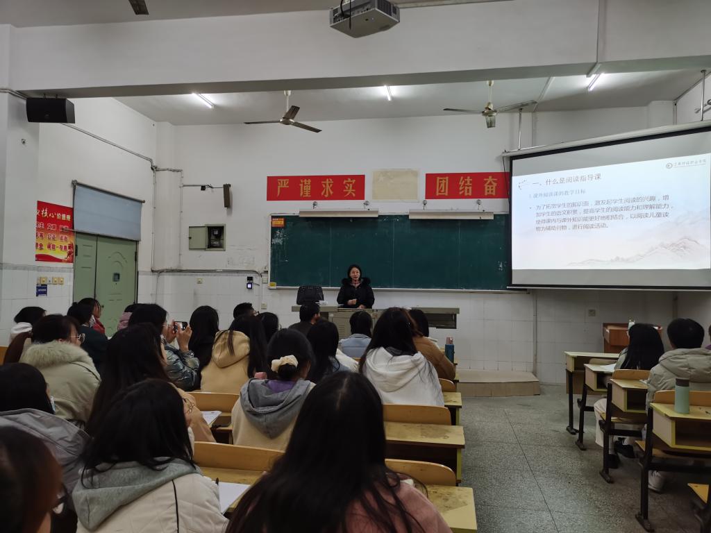 2021年12月8日,为提高社员在线给农村留守与贫困儿童进行阅读指导的质量,beat365正版唯一入口必一公益家教社在教学楼708举行教育关爱服务技能培训,基础教育学院王小娟老师应邀为社员主讲《如何给小学生讲好阅读指导课》。