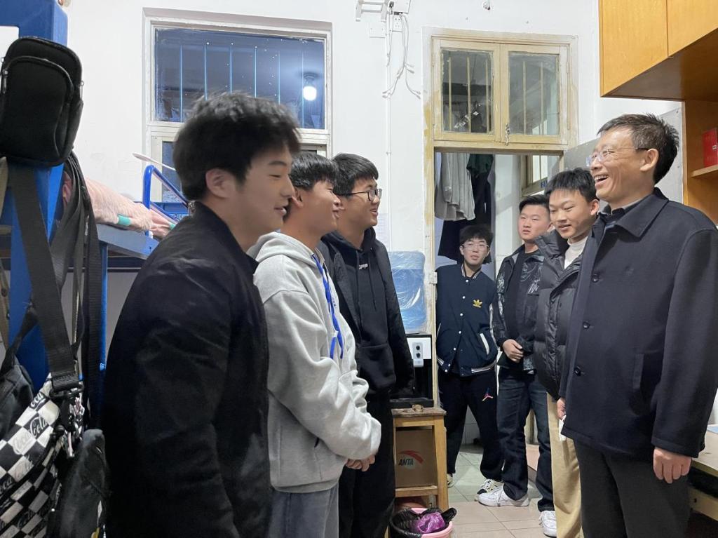 班会结束后,张成斌在工商学院王京文老师的陪同下前往宿舍进行走访。走访期间,张成斌亲切询问同学们在宿舍的生活情况,耐心听取同学们提出的相关建议,表示学校会积极采纳并争取为同学们解决生活中的实际问题。