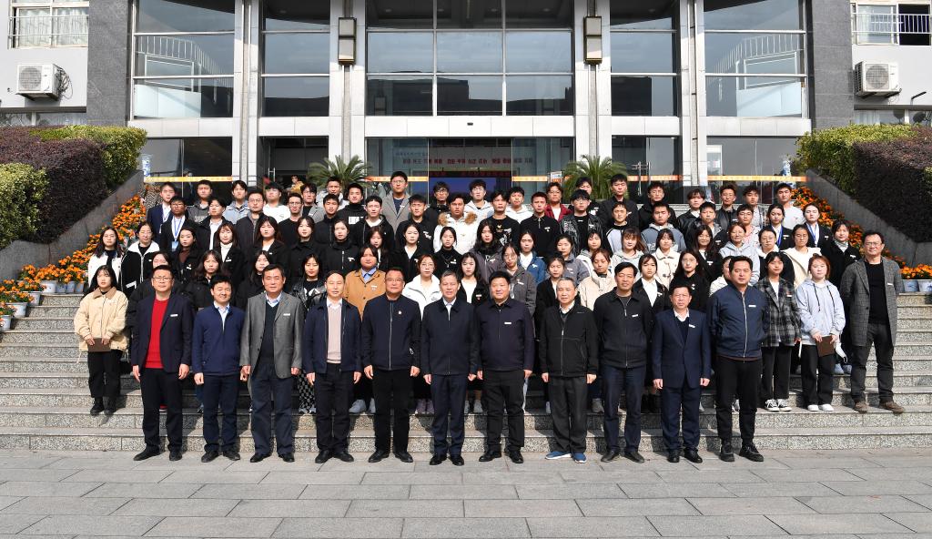 “要以实现中华民族伟大复兴为己任,增强做中国人的志气、骨气、底气,不负时代,不负韶华,不负党和人民的殷切期望!”,朱斌同志引用习近平总书记在庆祝中国共产党成立100周年大会上的讲话深情寄语广大青年师生,要时刻牢记总书记的谆谆教导、不负总书记的殷切期望,坚定理想信念增强志气,锤炼品德修养增强骨气,练就过硬本领增强底气,担当起时代赋予的重任,做好“学”、“信”、“践”。“学”就是要从历史中学道理,从书本中学知识,从发展中学创新,并持之以恒;“信”就是要有为民族挺起脊梁的信仰,有为社会立德树人的信念,有为祖国实现现代化的信心;“践”就是要从实践中磨炼意志,从实践中砥砺斗志,从实践中培养壮志。