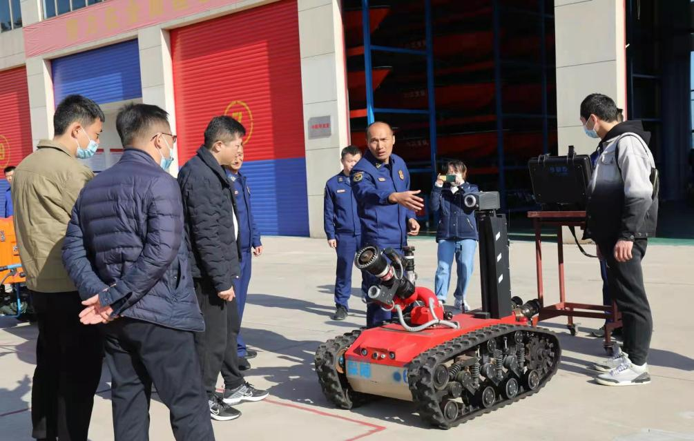 参观过程中消防大队新闻科万科长、特勤大队刘书记就各种常用消防车辆及装备器材进行了介绍,演示了液压钳、扩张器、多功能便携式破拆工具、灭火机器人等多种抢险救援器材装备,并鼓励大家实地操作,以便更好掌握消防器材的使用。