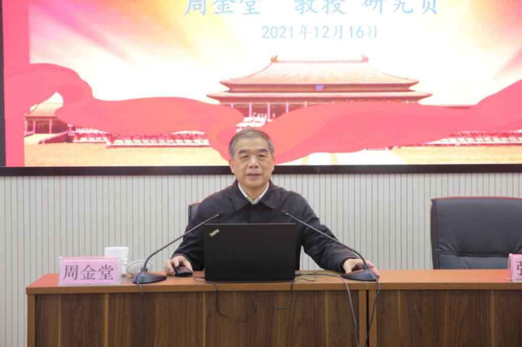 周金堂从“一个号召”“两个确立”“三次飞跃”“五大历史意义”“十条历史经验”“十三方面成就”等方面解读了党的十九届六中全会精神;结合党的十九届六中全会精神,从根本方针、工作思路、总体布局、主要目标等方面阐述了新时代党的建设总要求,介绍了新时代党的建设的八大新任务;结合高校党建和思想政治工作实际,紧扣江西省第十五次党代会精神,提出了夯实高校基层党建、创新打造党建品牌的指导意见。