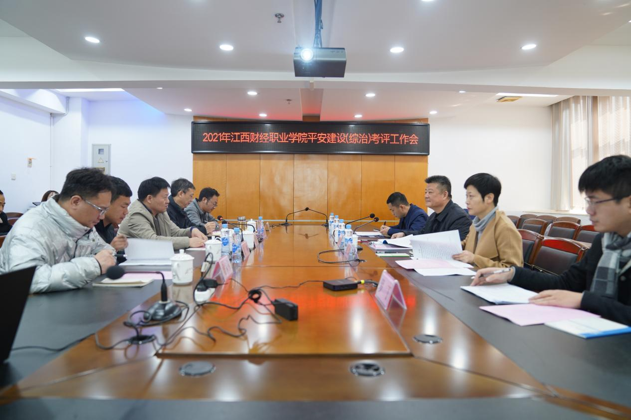 2021年12月22日上午,由九江市委政法委副书记刘松带队的平安建设考评小组一行莅临beat365官网,对beat365官网2021年度平安建设工作进行考评检查。校党委副书记、校长刘彪文,党委委员、副校长张成斌和平安建设领导小组部分成员参加了考评汇报会,会议由刘彪文校长主持。