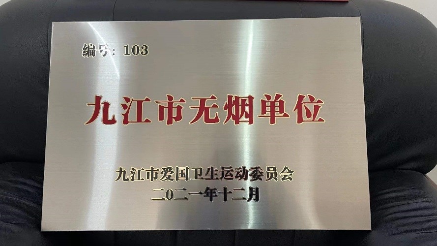 近日,九江市爱国卫生委员会印发了《关于命名2021年度九江市第二批无烟单位的通知》(九爱卫发[2021]4号),对创建过程中成绩显著的78家单位予以表彰,beat365官网被授予“九江市无烟单位”荣誉称号。