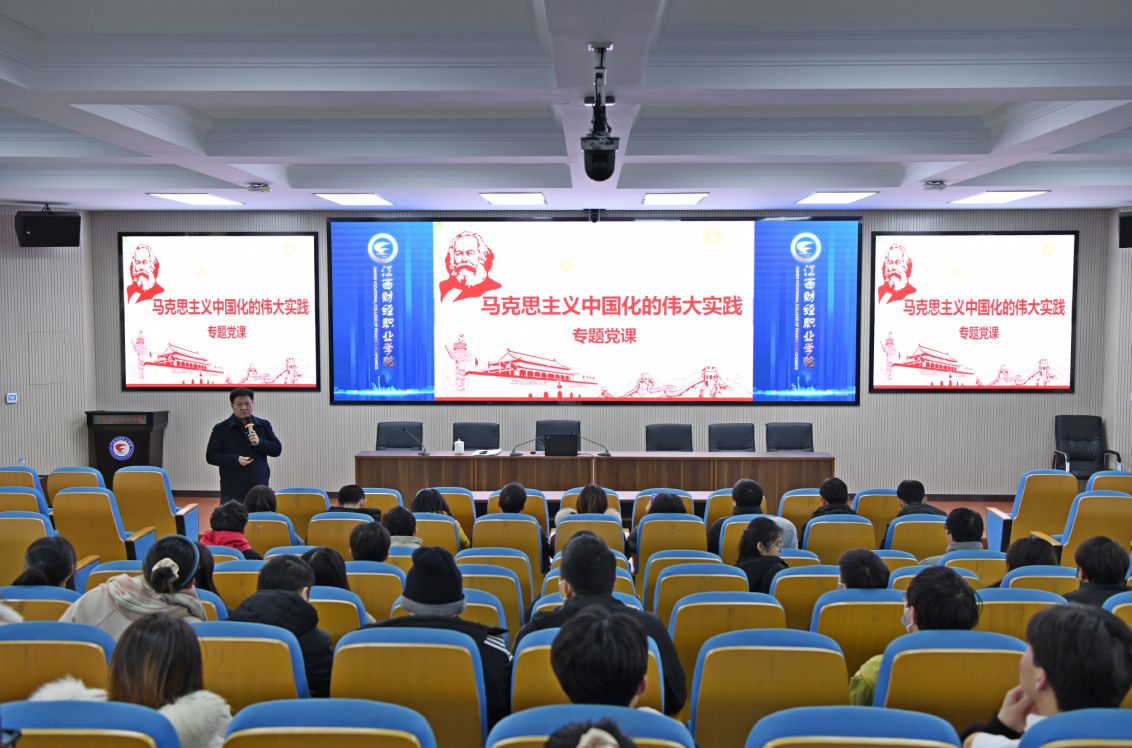 为深入学习马克思主义中国化的伟大历程,激励党员教师和青年学生进一步坚定理想、探求真理、勇攀高峰,2021年12月30日下午,校党委副书记、校长刘彪文教授在综合楼七楼报告厅讲授了“马克思主义中国化的伟大实践”专题党课暨思政课。基础部党支部党员教师、2019级本科2班全体学生聆听了讲座。
