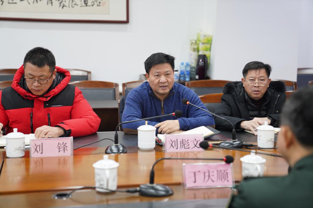 1月6日上午,九江市军分区司令员丁庆顺、浔阳区人武部政委蒲金山一行来beat365官网进行走访调研,党委副书记、校长刘彪文,党委委员邱家明、刘锋出席调研会。