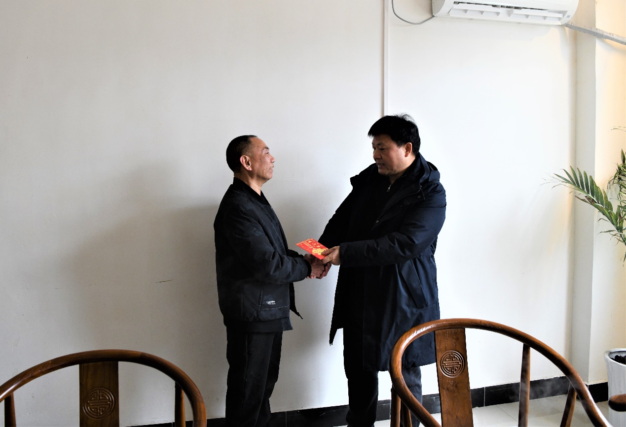 刘彪文校长代表学校向该企业春节期间5名留厂困难职工送去春节慰问金,并表示学校将尽力支持和帮助企业实现更好发展。