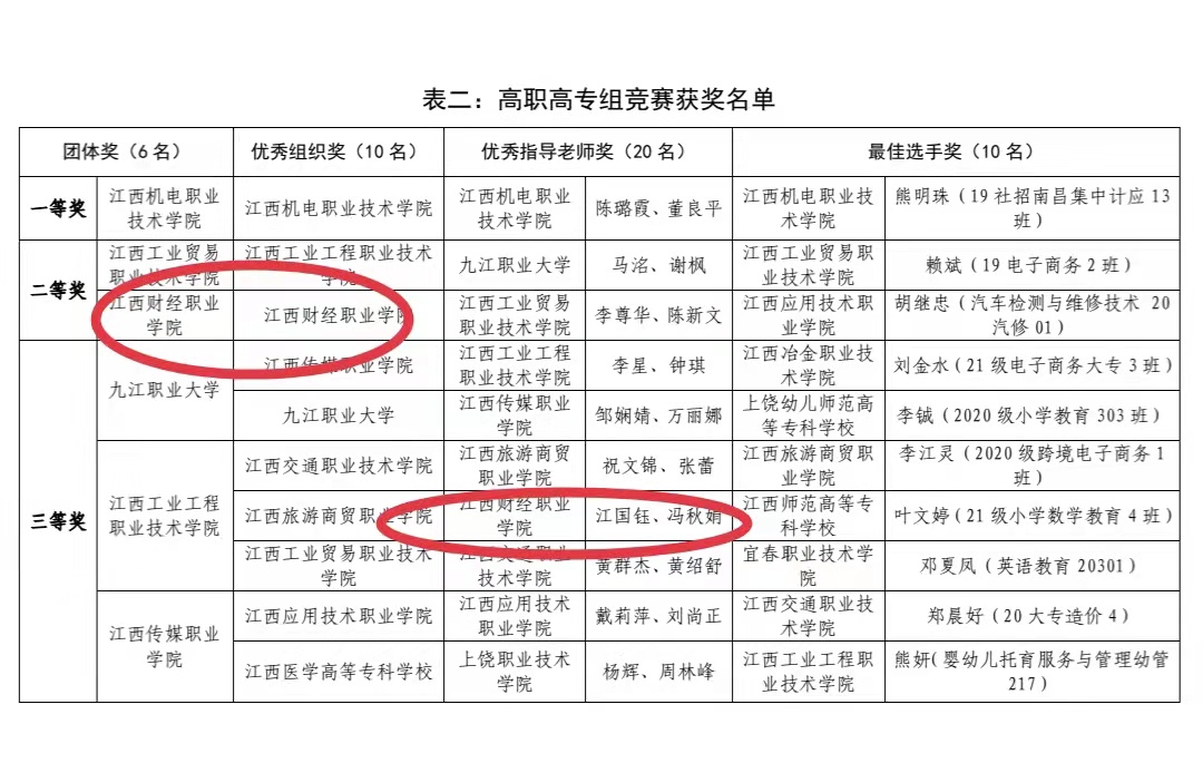 为庆祝中国共产党成立100周年,进一步推动全省高校师生深入学习党史、新中国史、改革开放史、社会主义发展史,2021年11月20日,中共江西省委教育工委启动“百年辉煌路 践行初心使命”全省大学生爱国主义教育知识竞答赛。日前,竞答赛成绩公布,beat365官网荣获高职高专组团体二等奖、优秀组织奖,江国钰、冯秋娟老师获优秀指导教师奖。