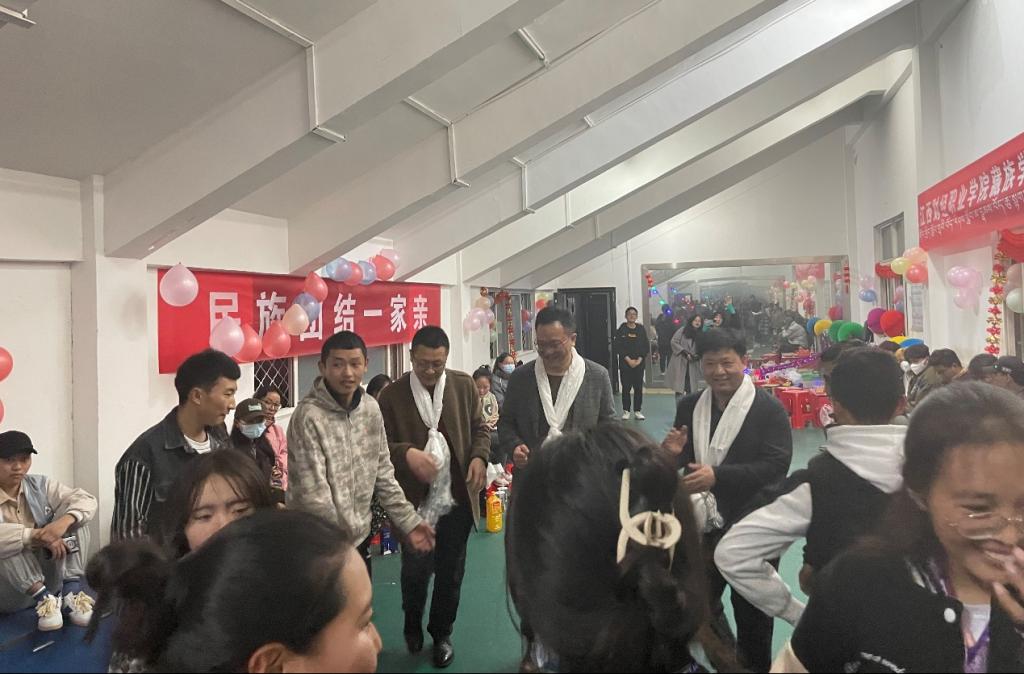 联欢会上,刘彪文校长发表了激情洋溢的讲话。他说:“藏族同学不远万里来到江西求学,今天我们组织这个联欢会,就是希望同学们像在家一样,感受到浓郁的新年氛围。希望同学们能够在学校快乐的学习和生活,克服语言、生活习惯等方面的困难,学校也会尽最大努力为大家排忧解难。希望同学们不辜负学校和家长的希望,勤奋刻苦、努力学习,夯实建设家乡的本领,为民族团结、祖国建设贡献自己的力量。最后,祝所有藏族同学节日快乐,祝你们在新的一年里身体健康,学业有成,扎西德勒(吉祥如意)!”