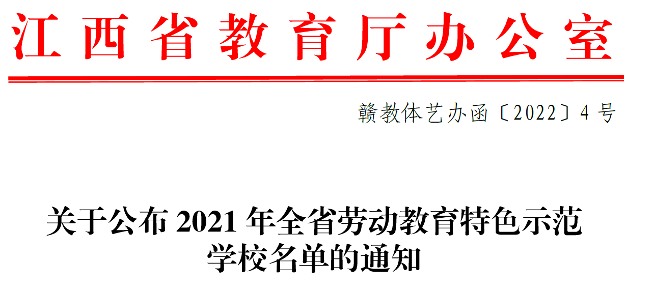 日前,省教育厅公布了第一批省级劳动教育特色示范学校名单,全省共有37所高校、156所中小学校(幼儿园)上榜。beat365官网获批为“江西省劳动教育特色示范学校”。