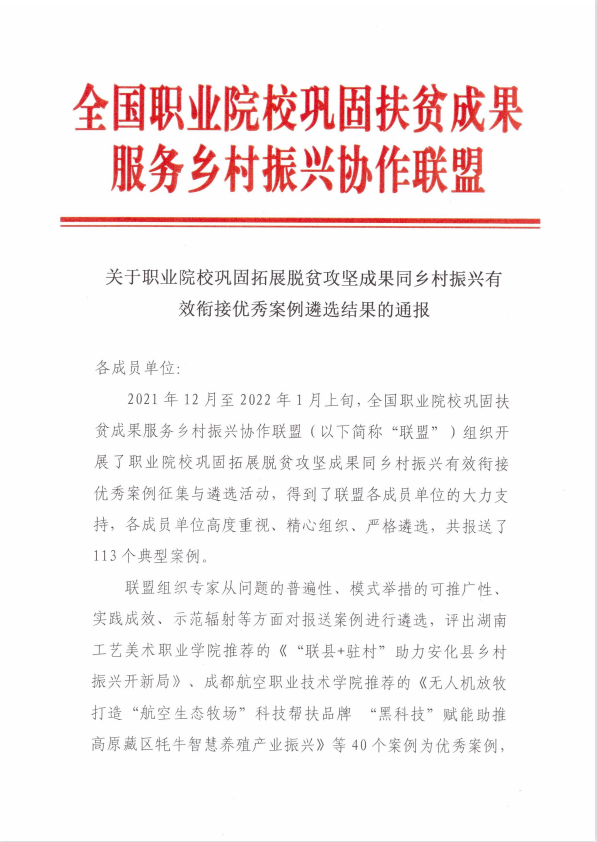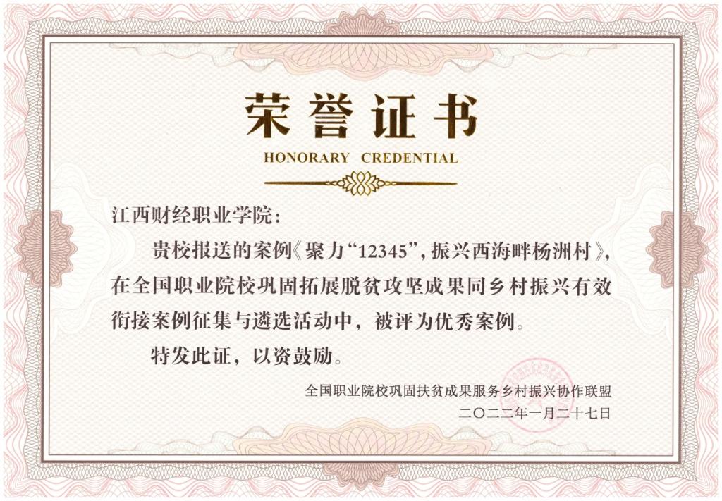 今年初,全国职业院校巩固扶贫成果服务乡村振兴协作联盟(以下简称“联盟”)开展了职业院校巩固拓展脱贫攻坚成果同乡村振兴有效衔接优秀案例征集与遴选活动,组织专家从问题的普遍性、模式举措的可推广性、实践成效、示范辐射等方面对全国各成员单位报送的众多案例进行评比遴选,最终评选出40个优秀案例。beat365官网报送的《聚力“12345”,振兴西海畔杨洲村》获此荣誉。