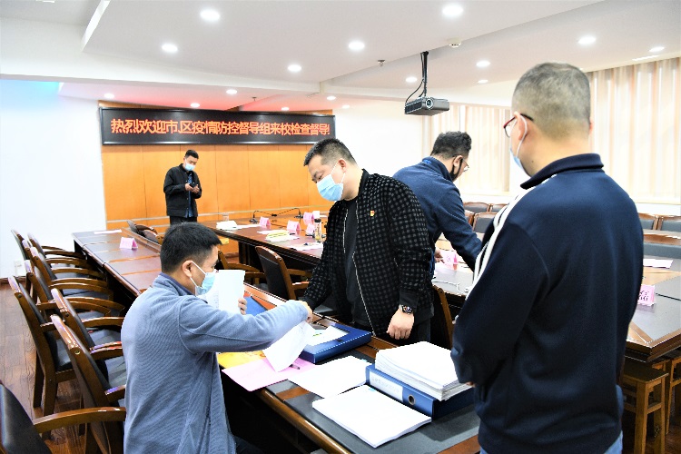 邱家明汇报了beat365官网春季开学以来的疫情防控工作,对beat365官网各项防疫措施、核酸检测、疫苗接种等情况作了详细介绍;胡振组长强调当前疫情防疫形势严峻,要加强对重点人员、重点环境、重点环节的监督管理,将各项管控措施落实到位;随后,督察组对学校疫情防控的相关材料进行了查阅;同时详细察看了各出入口、商业门点、快递点等场所的情况,并提出了整改意见。