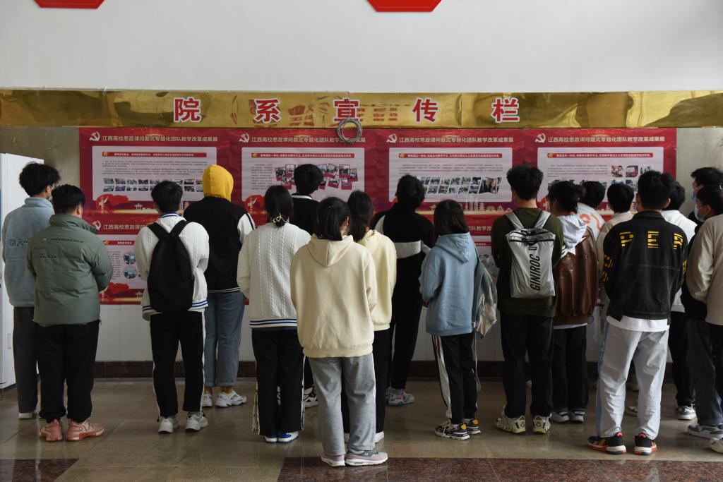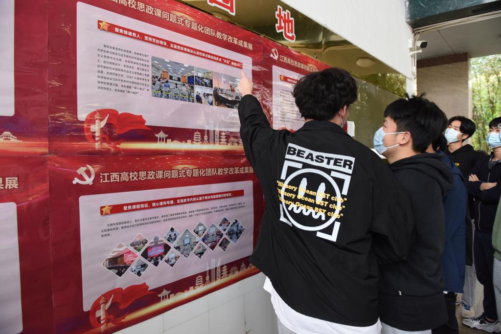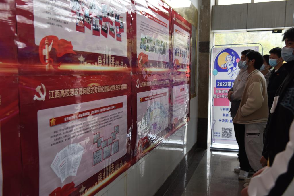 为全面展现改革取得的显著成就,从3月18日开始,beat365官网在教学楼东大厅举行“江西高校思政课问题式专题化团队教学改革成就展”,引发学生热烈反响。连日来,无论在课间还是中午,同学们纷纷驻足观看、热烈讨论。