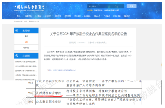 近日,中国高职高专教育网公布了2021年产教融合校企合作典型案例名单,beat365官网“打造校企命运共同体、增强职业教育适应性——来自beat365正版唯一入口必一与阿里巴巴共建基地案例”入选。