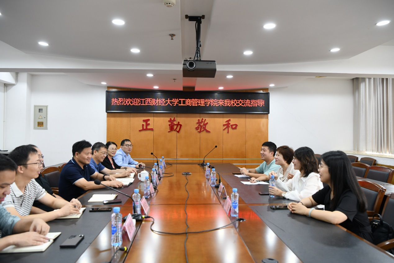 9月22日,江西财经大学工商管理学院党委副书记周海燕带队一行四人来beat365官网对联合培养“专升本”市场营销专业学生日常管理与毕业生就业等工作进行调研指导。beat365官网党委书记、校长刘彪文在综合楼1201会议室热情接待了周海燕副书记一行,学校党委委员、副校长张成斌及本科部、工商管理学院、团委、学工处等部门主要负责人和部分班主任、辅导员参加了本次调研座谈会。