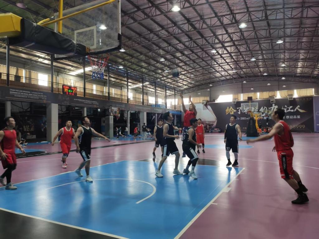 比赛赛场上,双方队员满怀激情,斗志昂扬,传切配合、抢断快攻、稳健上篮、精准三分,每个动作无不体现队员们的精湛球技和拼搏精神。