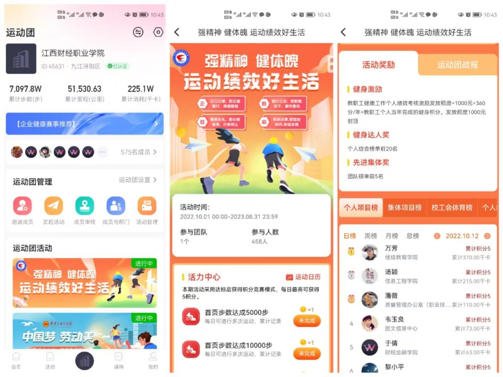 当健康“遇见”绩效,我们这样做。2022年5月,学校出台《beat365正版唯一入口必一教职工健康建设工作方案》(试行),与北京趣动科技有限公司合作开发出beat365官网“趣动will go”APP专用运动平台模块,并于国庆节期间正式投入使用。目前在平台中参与的人数达575人。活动分线上、线下两种积分方式,线上任务菜单由健步、跑步、骑行、多项AI健身四大主题功能板块组成,共20个运动打卡项目;线下则根据各个兴趣班和各类体育比赛的参与情况等进行积分,最终积分纳入个人绩效考核奖励及部门绩效考核。