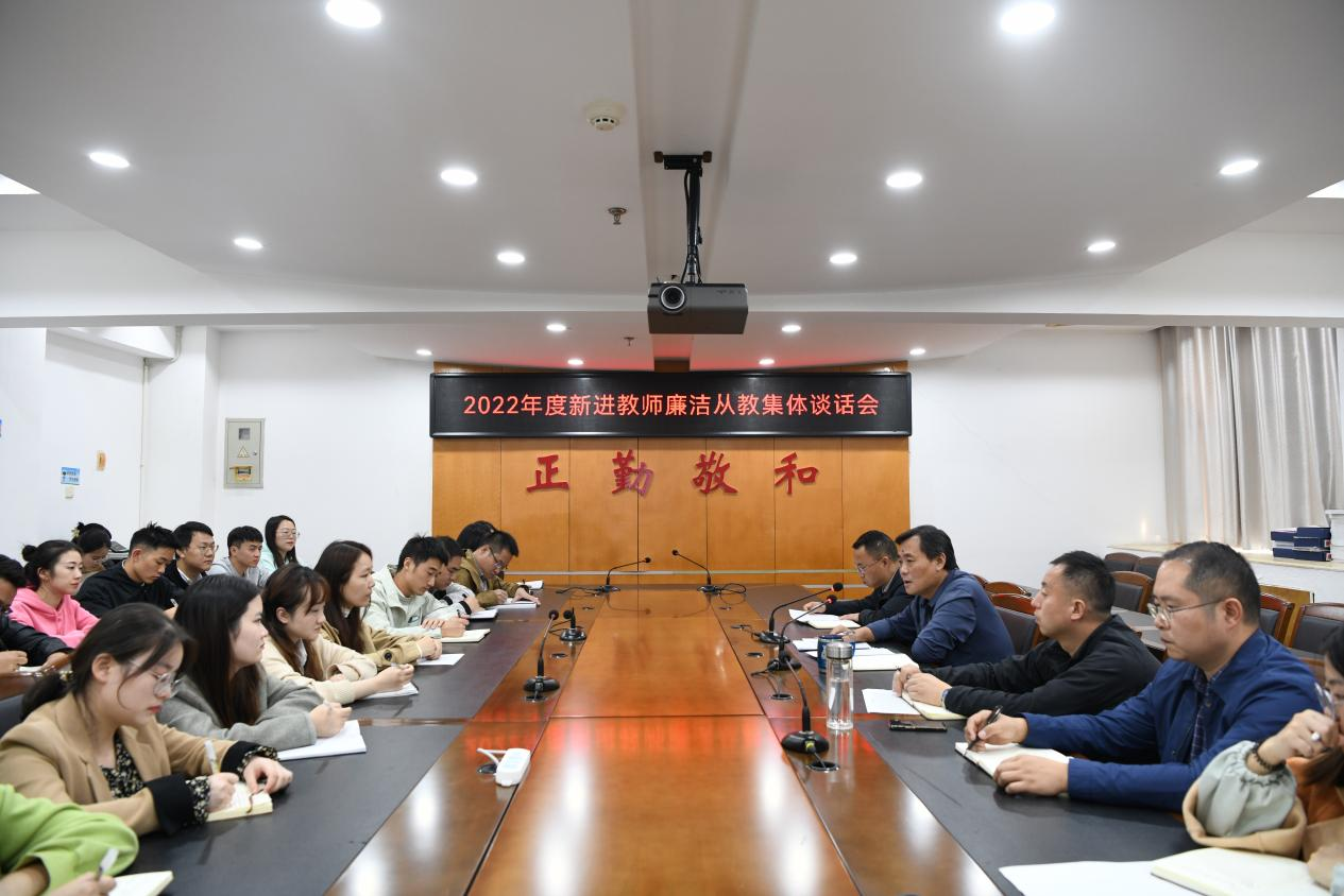 10月19日下午,学校纪委召开了2022年度新进教师廉洁从教集体谈话会。校党委委员、纪委书记阙沪平、纪委综合办公室主要负责人汪卫平、组织部副部长许文及20余位新入职教师参加了会议,会议由纪委副书记吕民主持。