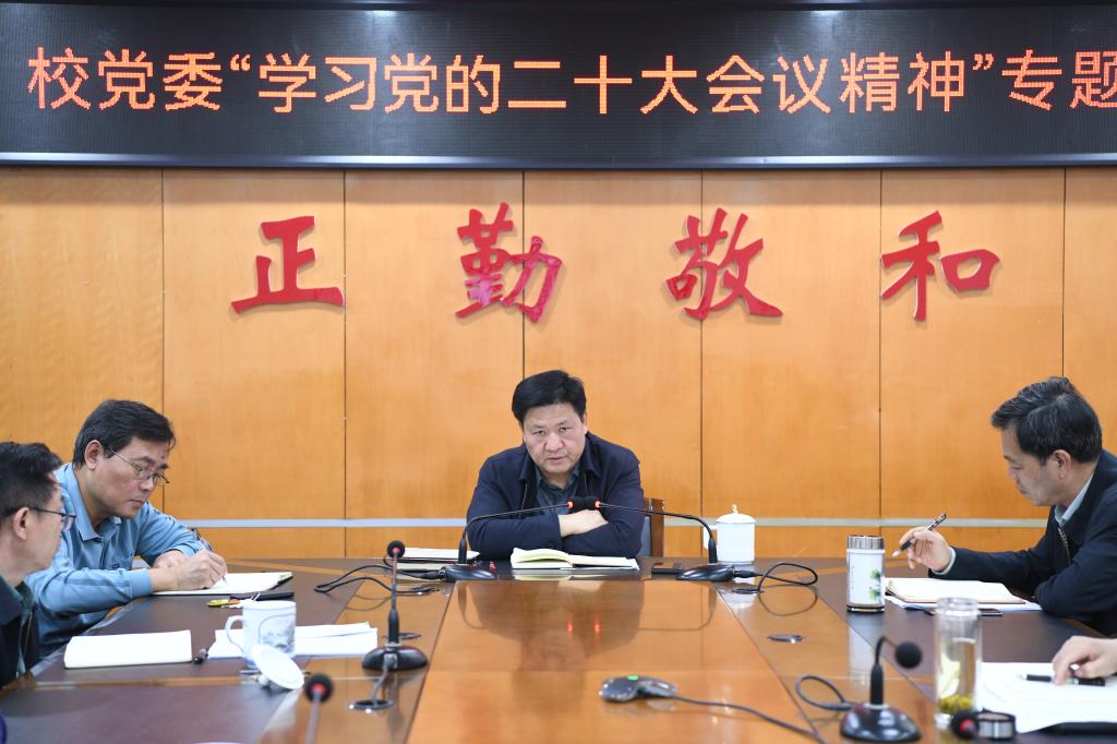 为学习宣传好党的二十大精神,学校党委成立了党的二十大精神专题学习班。10月20日上午,党委开展了第一次专题学习,集中学习了习近平总书记在党的二十大开幕会上所作《高举中国特色社会主义伟大旗帜 为全面建设社会主义现代化国家而团结奋斗》重要报告,部署学校学习宣传党的二十大精神有关工作。校领导班子成员、党委会列席人员、各党总支书记参加学习。校党委书记、校长刘彪文主持会议并讲话。