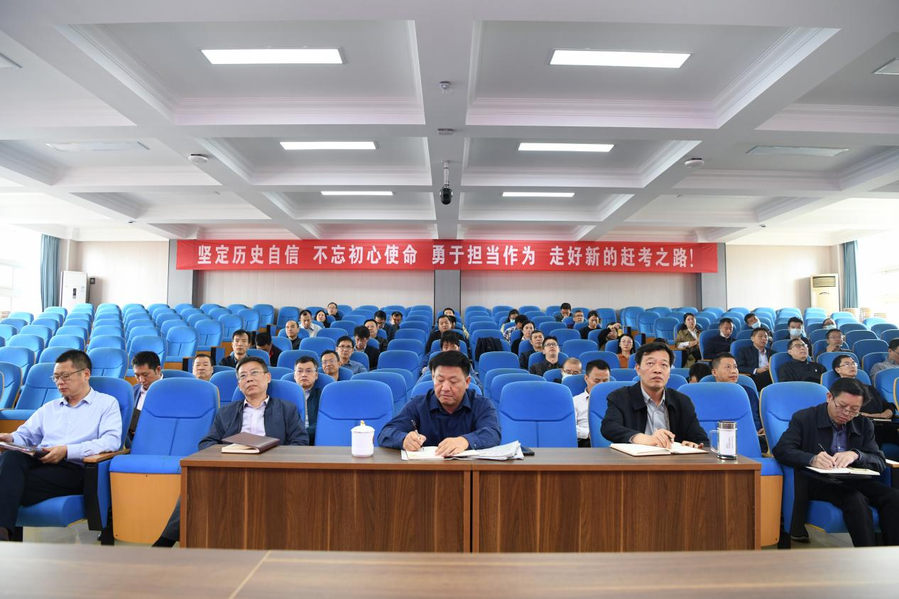 10月24日上午,学校在综合楼七楼报告厅组织党员干部集中学习党的二十大报告。校领导班子成员、全体中层干部和各党支部书记参加学习。学习会由校党委书记、校长刘彪文主持。