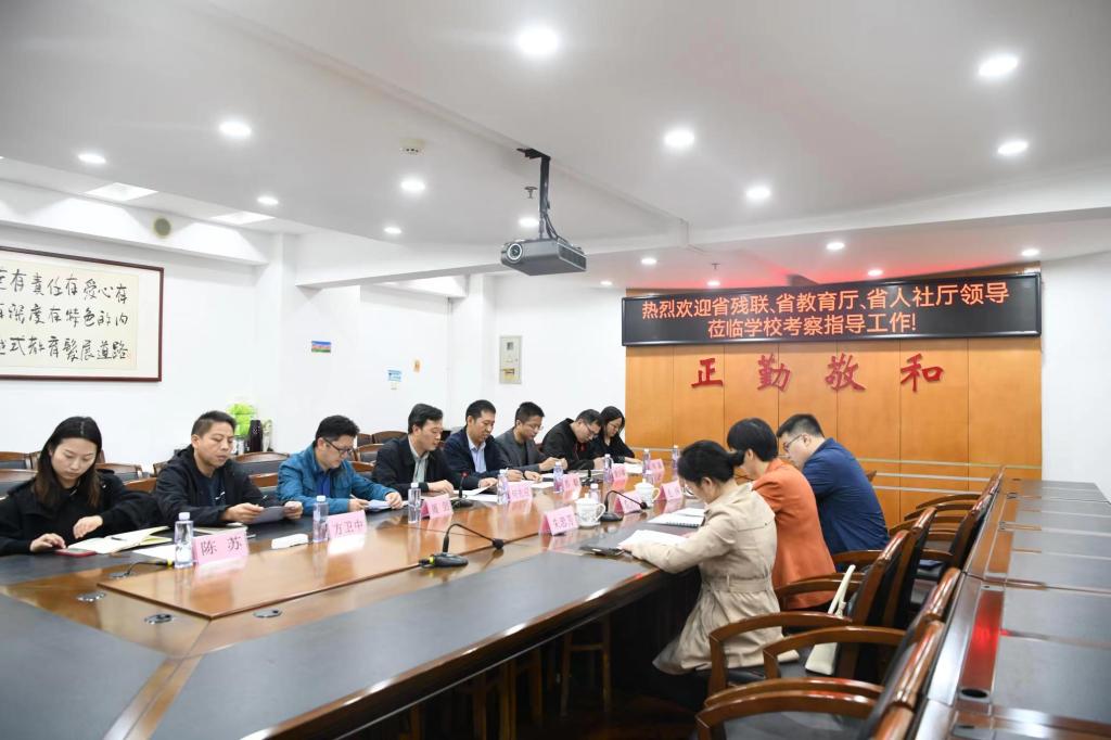 10月27日上午,省残联教育就业处二级调研员秦闽丽、省教育厅职业教育与成人教育处副处级干部朱忠芳、省人社厅技工院校管理处干部毛伟等一行3人来到beat365官网,就残疾人职业教育基地认定工作开展调研。校党委书记、校长刘彪文在综合楼1202会议室热情接待了调研组一行,校党委副书记、常务副校长何先应,教务处、招生就业处、学工处、创新创业实践学院等部门负责同志及相关教师参加了调研座谈会。