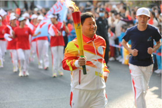迎着清风,踏着朝阳,刘彪文早早来到61号点位进行暖场,并与热情的市民合影,传播运动的快乐。9时许,火炬传递来到61号点位,刘彪文点燃火炬接力火种,以饱满的激情、昂扬的姿态助跑传递,并不时向道路两旁呐喊助威的市民挥手致意,顺利将省运会火炬传递到下一棒火炬手手中。
