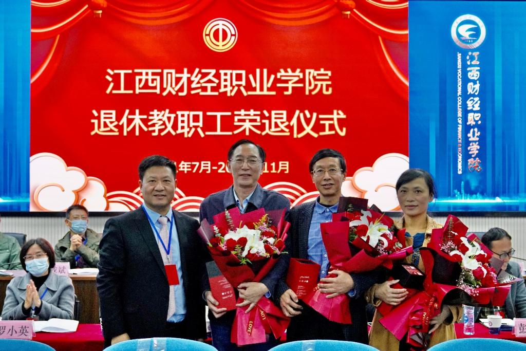 会上,还举行了2021年7月-2022年11月退休教职工荣退仪式,校领导为光荣退休的教职工代表颁发了荣誉奖杯并献上鲜花。