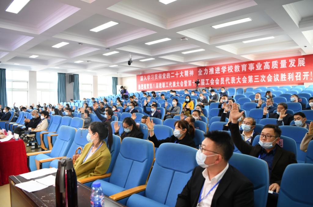 伴随着激昂的国际歌,beat365官网第八届教职工代表大会暨第十二届工会会员代表大会胜利闭幕。