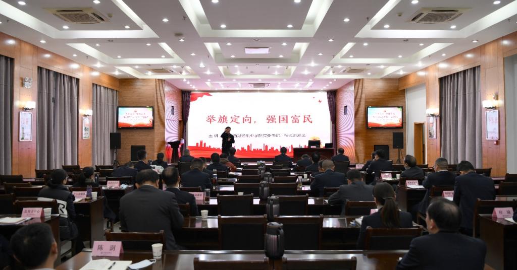 在系统讲解了党的二十大报告的主要内容后,刘彪文强调,党的二十大报告,博大精深、高瞻远瞩、擘画未来,在政治上、理论上、实践上奠定了中国现代化建设的坚实基础。“两个确立”是党在新时代取得的重大政治成果,是推动党和国家事业取得历史性成就、发生历史性变革的决定性因素。核心就是力量,旗帜引领方向。学习贯彻党的二十大精神,就要深刻领悟“两个确立”的决定性意义,切实把“两个确立”的政治成果转化为坚决做到“两个维护”的政治自觉,把党的二十大作出的各项战略部署转化为实际行动。