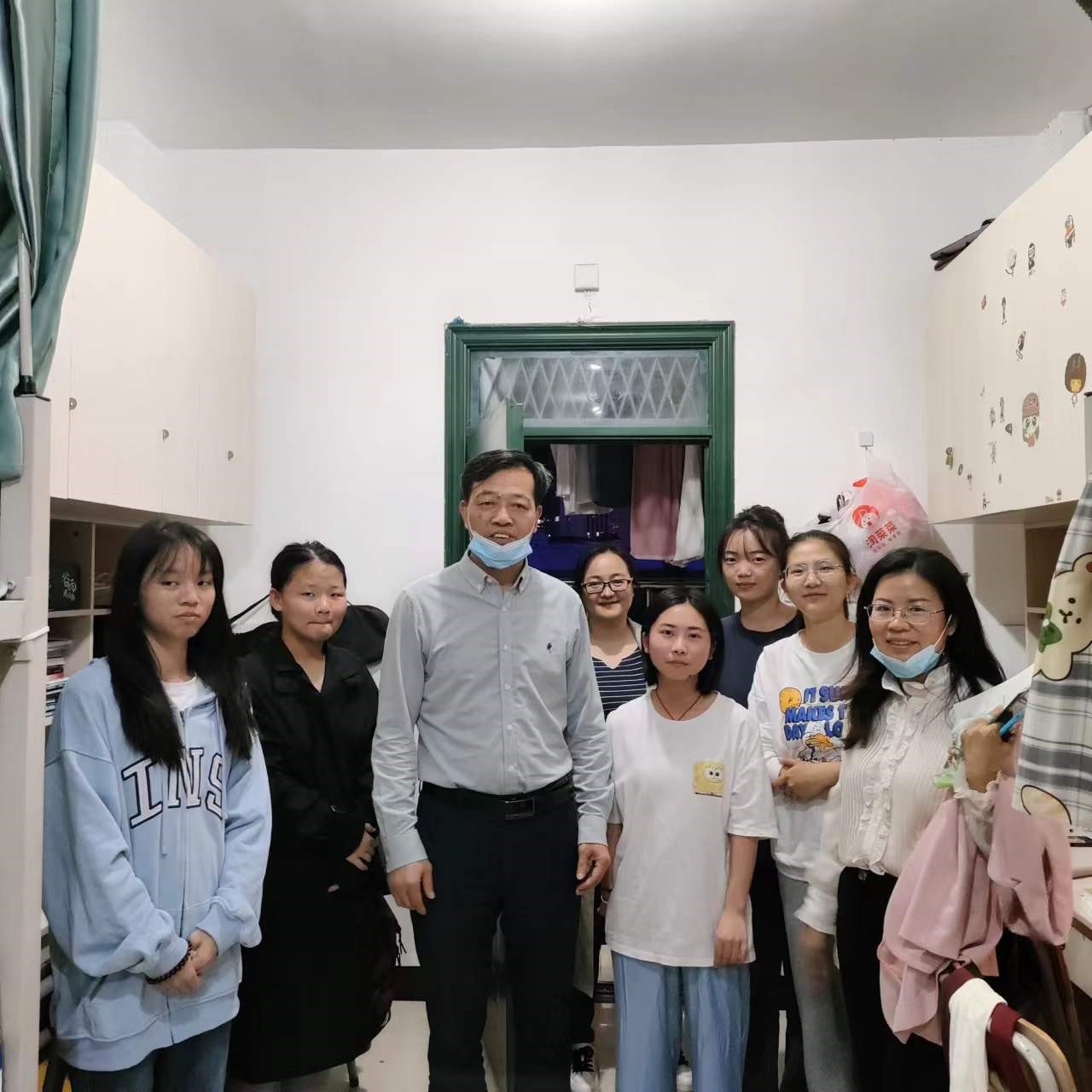 在走访宿舍的过程中,何先应与同学们进行了近距离、亲切的交流,详细了解同学们的身心状况、思想动态和近期学习、生活情况。针对近期天气变化、气温骤降,何常务询问同学们棉服、被褥是否充足,提醒大家注意防寒保暖。同时嘱咐大家正确对待疫情,要一如既往地按照学校统一部署,注意开窗通风,保持身心健康,不放松、不泄劲,有任何困难随时联系学院老师。何常务与学生们面对面、零距离的谈心,犹如春风化雨般地滋润着学生们的心田。