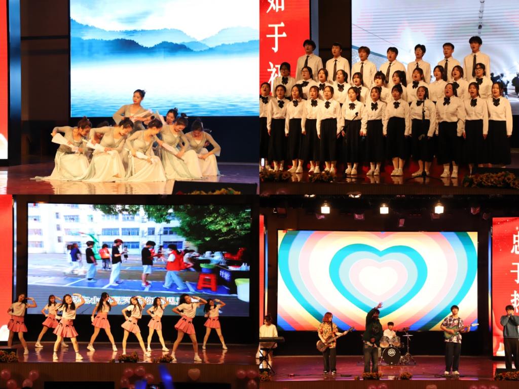 随后,校团委各部门为大会精心准备的文艺节目陆续上演。艺术团主持队《写给未来的你》、社团管理部《平凡之路》、艺术团舞蹈队《雨涧春行图》《talk that talk》、校学生会生活部《追光者》、社团管理部《solo》、艺术团声乐队《如愿》、器乐队弹唱的《霓虹甜心》《为你唱首歌》、校青年志愿者协会《舞蹈串烧》、校团委办公室《青年》、艺术团礼仪队《Romeo and Juliet》、校学生会组织部《我们都是追梦人》、艺术团舞美部《健忘村》、校团委爱心社《舞蹈串烧》、校学生会学习部《小幸运》、校团委团校《夜空中最亮的星》...精彩的节目道出了同学们对团学工作的深厚情感及对未来的美好展望,展现了青年人的蓬勃朝气和青春活力,传递了新生代的铿锵斗志和满怀激情。整场晚会高潮迭起,气氛热烈,精彩纷呈。