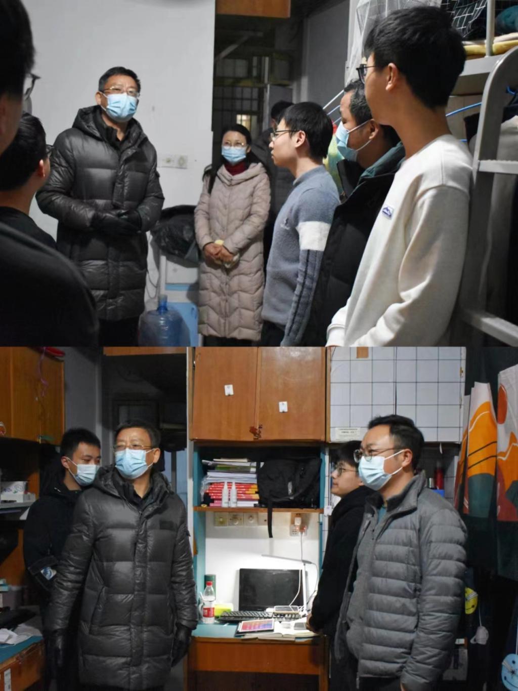 张成斌副校长自从挂点本科部、信息工程学院以来,百忙中常常抽空深入学生宿舍关心、看望学生并与学生亲切交谈,每到一间宿舍,学生见到张成斌副校长都非常亲切和开心,张副校长对学生嘘寒问暖,了解学生思想和身心健康状况,关心大家学习、生活等情况。在交谈中,他语重心长地提醒同学们,疫情期间要做好个人防护、不去人员密集场所,做好个人卫生、保持宿舍整洁通风,保证饮食营养、加强体育锻炼,养成良好的生活习惯;针对近期天气变化,气温骤降,他提醒同学们要注意防寒保暖,预防感冒,并嘱咐大家遇到困难和问题随时找学院老师、辅导员沟通,也要学会冷静思考应对问题想办法;勉励同学们珍惜当下,勤奋学习。张副校长暖心的关爱,亲切的问候,在严寒的冬日让同学们倍感温暖。同学们纷纷表示将遵守防疫规定,自觉做好个人防护,努力学好专业知识,掌握本领,不辜负学校、老师的关心、培养和期望,将来为社会主义建设作出应有的贡献。