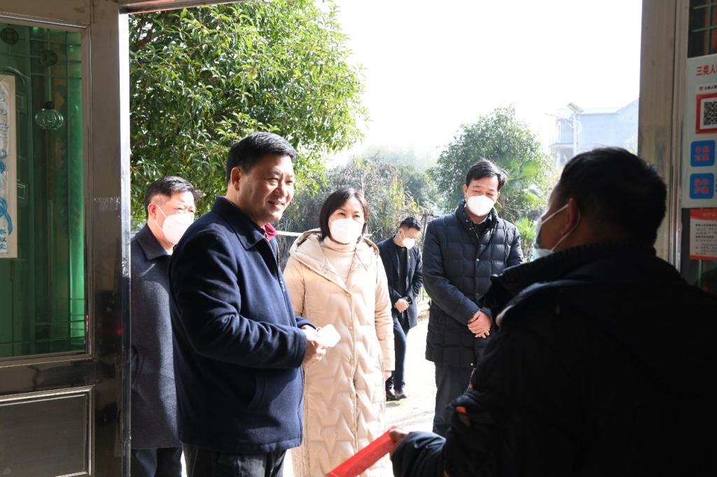 为认真落实习近平新时代中国特色社会主义思想和国家乡村振兴战略,扎实推进巩固脱贫攻坚成果与乡村振兴有效衔接工作,1月4日,校党委书记刘彪文、校长彭慧带队深入beat365官网定点帮扶村武宁县杨洲乡杨洲村实地调研,并开展春节前夕走访慰问。校党委副书记、常务副校长何先应,校党委委员邱家明,以及党政办公室、工会、文化旅游学院有关负责同志,杨洲村驻村工作队和村委干部陪同走访调研。