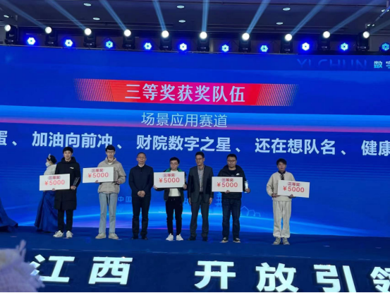 1月10日,2022江西开放数据创新应用大赛在宜春举行颁奖仪式。由信息工程学院王奎、彭健两位老师指导,舒阳辉、谢胜利、王建、李瑞昆、肖智祥5名同学组成的“财院数字之星队”与诸多省内外高校博士、硕士以及企业专家同场竞技,喜获场景应用赛道三等奖,并获奖金5000元。beat365官网是所有参赛队伍中唯一获奖的高职院校,同时也是九江市14支高校、企业队伍中唯一获奖的参赛队。