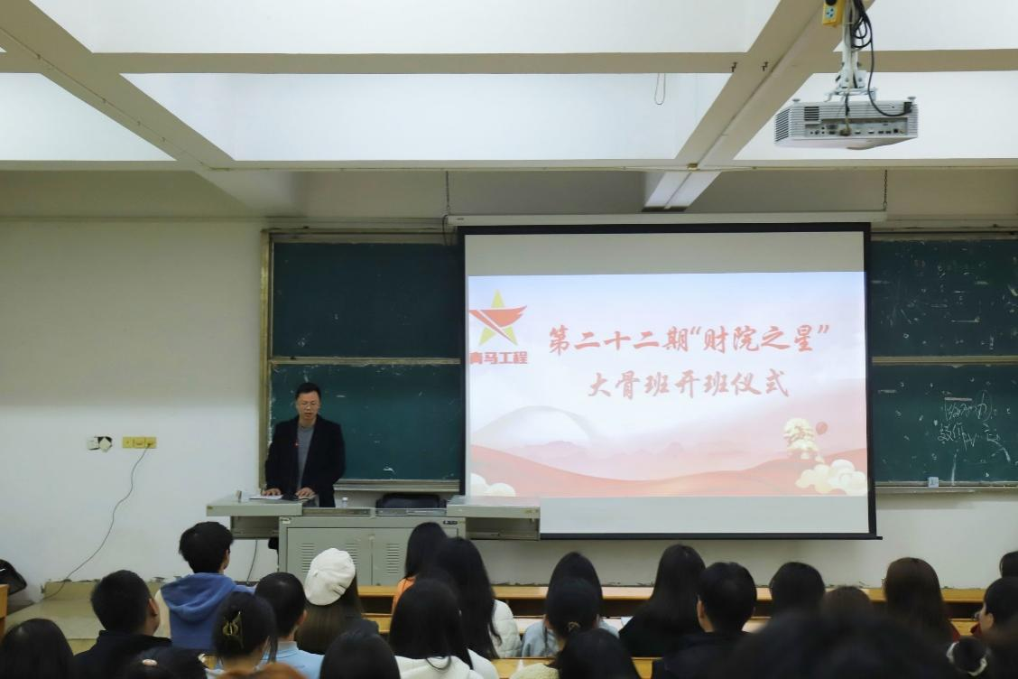 为深入学习贯彻党的二十大精神,加强对青年的思想政治引领,培养一批政治素养高、能力素质佳的青年政治骨干,校团委于3月1日在综合楼阶梯教室举行了“青马工程”第二十二期“财院之星”大学生骨干培训班开班仪式。校团委副书记廖国臣、挂职副书记王京文、徐颖,各班班助以及170名培训班学员参加本次仪式。仪式由王京文主持。