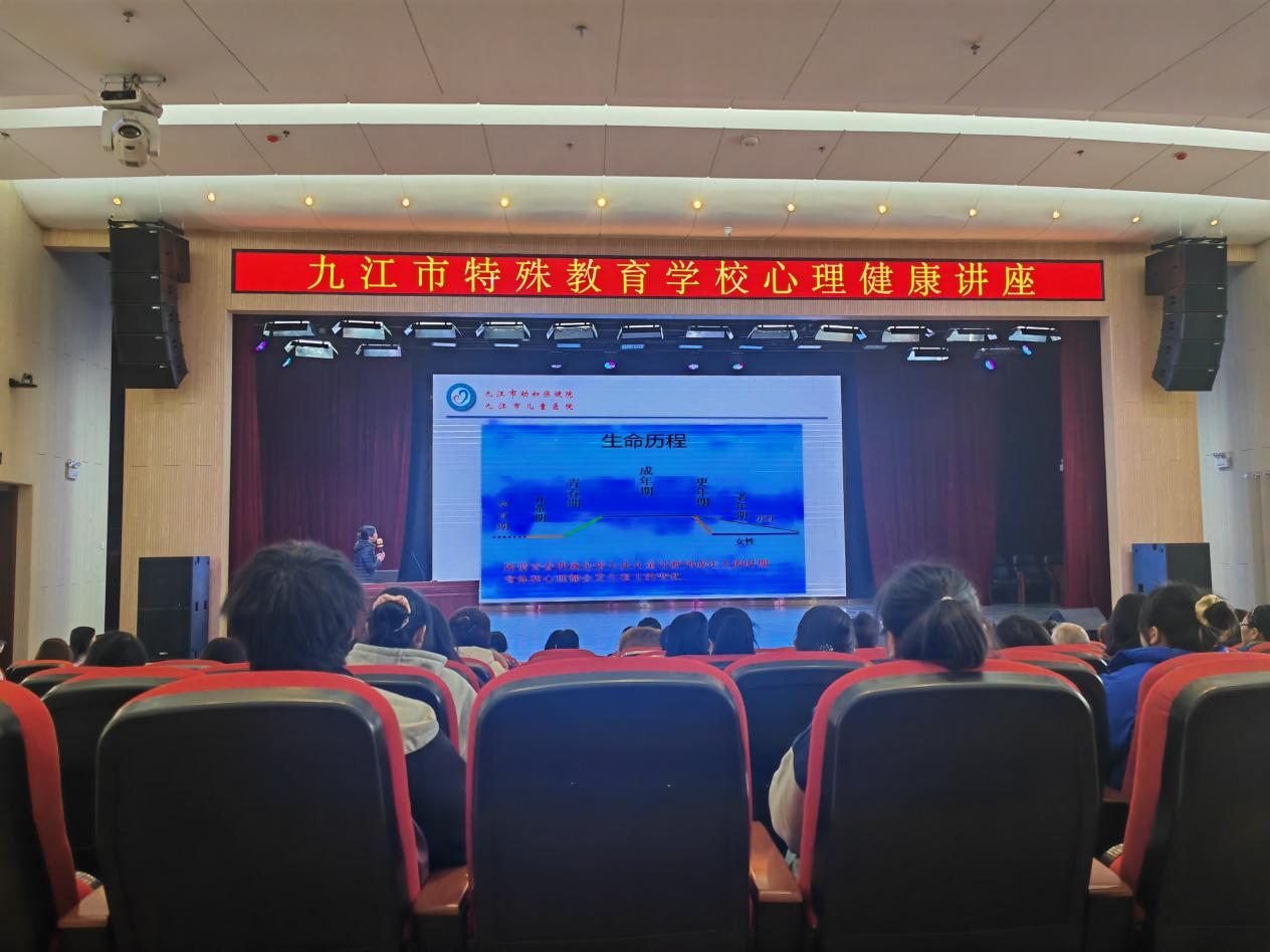 启动仪式结束后,九江市妇幼保健院儿童心理行为专科主任医师孟群、语言治疗师黄静作了题为《“医-教-康-家”相结合助力成长中的孩子》的主题心理健康讲座。讲座中,孟群主任团队结合临床案例与近期调研,对我市特殊儿童诊断和安置情况、门诊中特殊儿童青春期困惑、儿童成长的心理营养和需求、儿童和家庭心理支持的原则等方面进行了系统阐述。让学生们懂得了对待特殊儿童需要早期识别、科学干预,进而提高孩子独立能力,最终才能达到改善生活质量、减轻家庭压力的目标。孟主任的讲座深入浅出,幽默诙谐,充分调动了大家的积极性和参与性,大家认真聆听,获益匪浅。