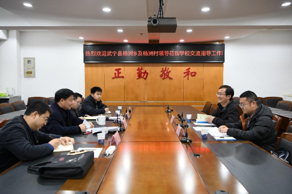 3月21日下午,武宁县杨洲乡党委书记盛伟一行来beat365官网就乡村振兴等有关工作进行交流。校党委书记刘彪文、党委委员邱家明热情接待了盛伟一行,驻村第一书记黄亮、校办公室副主任莫璇等参加座谈。