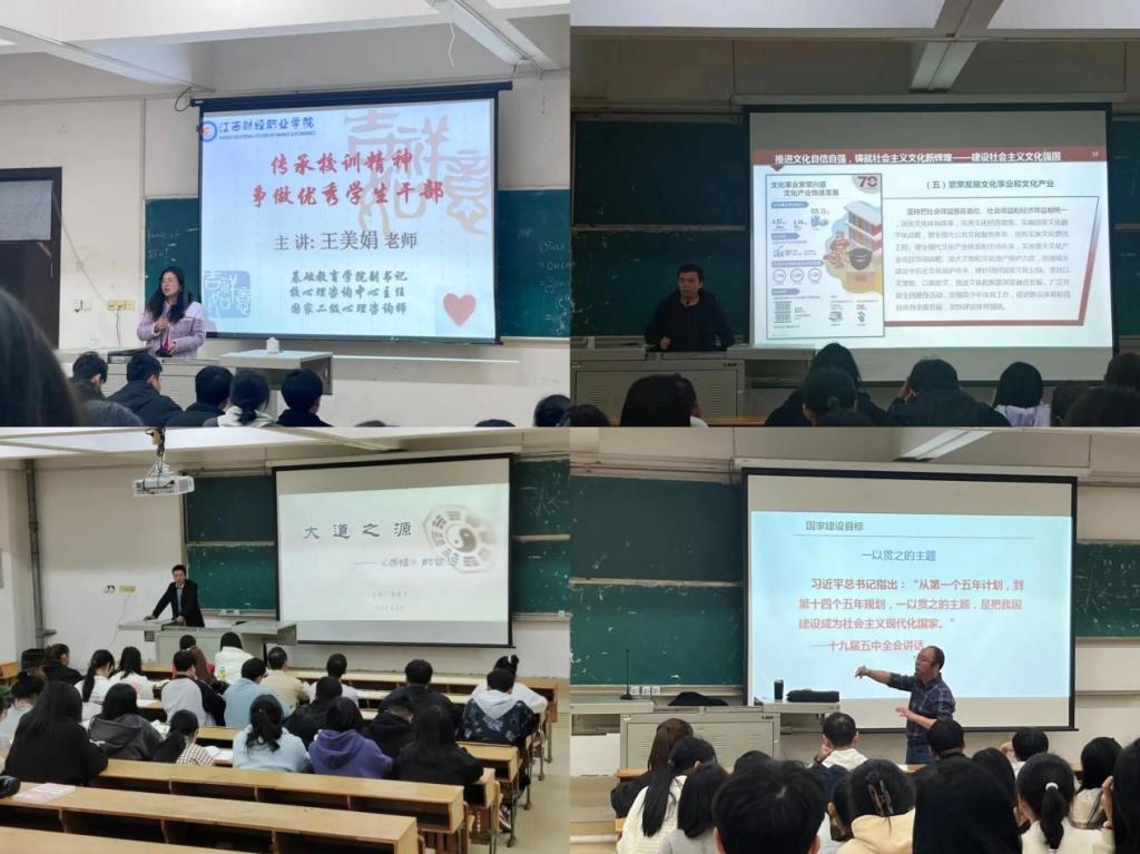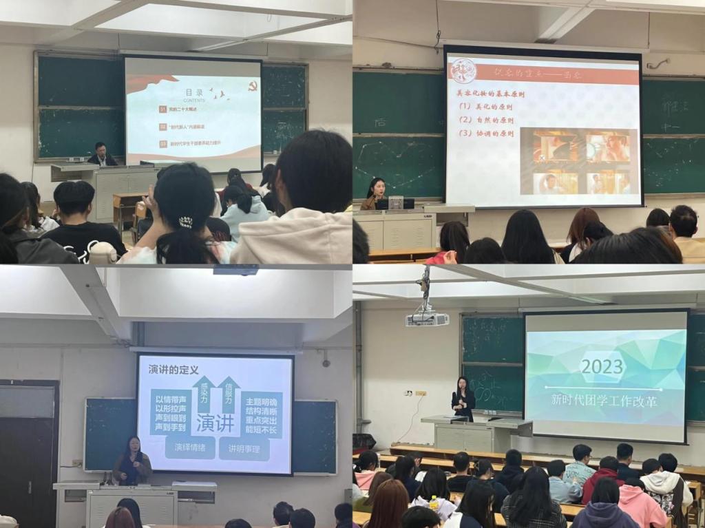 本次培训采取教师领学、学生听学、交流学习相结合的方式,从“弘毅、明德、敏行、博雅”八字古训着手,设置了9场系列主题讲座。其中,“弘毅学堂”围绕党史、团史及党的二十大精神,开展了3场讲座,旨在引导团学干部加深对中国共产党及共青团的认识,坚定理想信念、筑牢思想根基;“明德学堂”紧扣校训精神,开设了2场讲座,勉励学生传承校训精神、涵养道德品质,争做文明先锋;“敏行学堂”针对团学工作任务,举办了2场讲座,帮助团学干部熟悉工作要求、掌握工作方法、提高工作能力;“博雅学堂”突出学生人文素养提升,带领学生感悟中华优秀传统文化魅力。