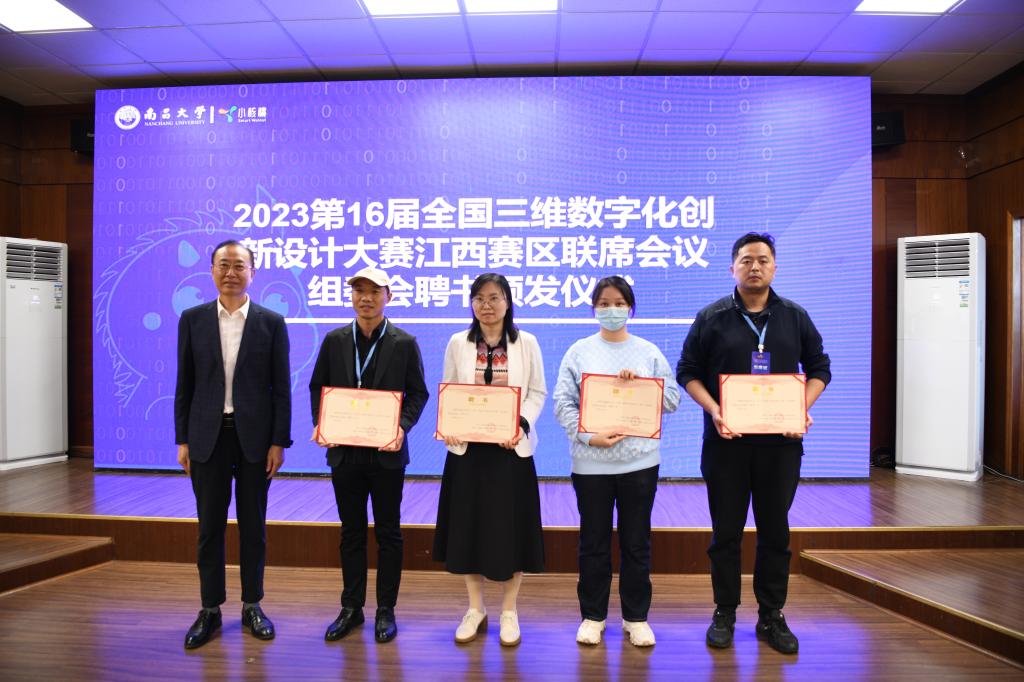 2023年4月12日,第16届全国三维数字化创新设计大赛江西赛区联席会议组委会筹组成立大会暨首届江西省元宇宙创新大赛启动会在南昌大学软件学院举行。校党委书记刘彪文被聘为大赛主任委员,李智同志被聘为专家委员。