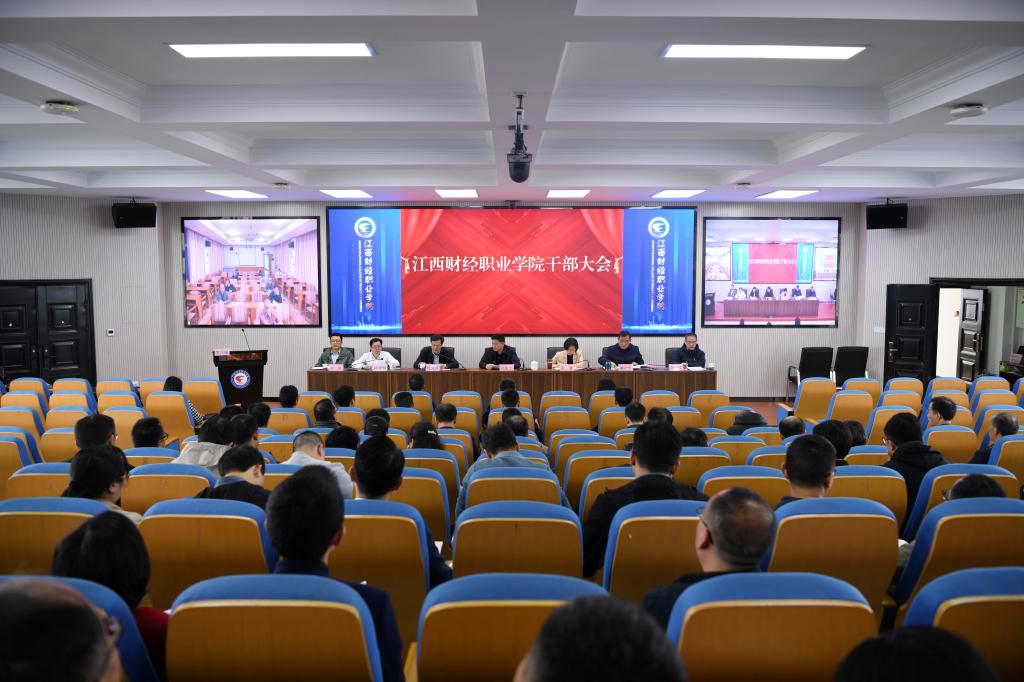 4月28日,学校在综合楼7楼报告厅召开了全体干部大会,学校领导班子成员出席,全体中层干部参加,南昌校区视频参会。会议由校党委书记刘彪文主持。